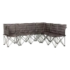 The Lippert Campfire folding sectional couch is so comfortable, you'll totally forget you're sitting outside. Featuring three modular pieces, you'll have plenty of room to kick back and relax without sacrificing personal space. Modular design for flexible seating options. Easy buckle connections for simple set up and tear down. Durable, resilient 600D polyester fabric with PVC coating. High-loft cushioning for ultimate comfort. More room to relax with a spacious design. Powder coated steel frame construction. Lightweight and easy to transport. Carry bag included.