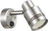 LED RV reading light with brushed nickel finish and MR16 base LED bulb. The LED bulb features 8-30V DC; 66 high power 3528 SMD LEDs; beam pattern 120 degrees; luminous flux 190 lumens; 3.12 watts; color temp 4000-4500K natural white. The 12V DC fixture is made of steel with a brushed nickel finish. Applications include 12 VDC marine and recreational vehicles. Measures 4-3/8" high.